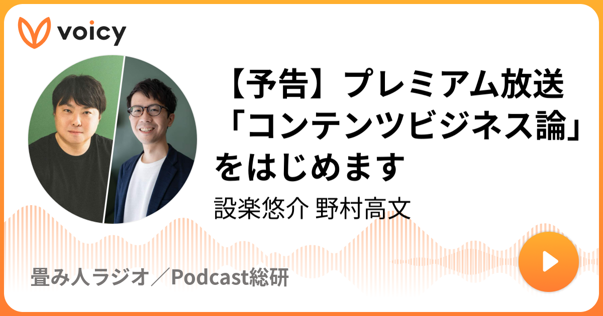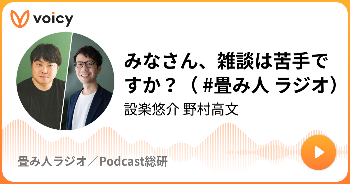 『藁を手に旅に出よう』を語る 荒木博行さんゲスト回(後編) 投稿日 2020年9月28日 更新日 2021年1月26日 著者 風呂敷 畳み人 カテゴリー Voicy 風呂敷「畳み人」ラジオ - シェア - ツイート - ブックマーク - LINE - コピー (2020年9月28日放送)『藁を手に旅に出よう』を語る 荒木博行さんゲスト回(後編)/ Voicy – 今日を彩るボイスメディアビジネスにおいて、世の中の人材は2種類に分けられる。風呂敷の「広げ人」と「畳み人」だ。突飛なアイデアを次々に発信し、世間を沸かせるのが「広げ人」だとすれば、そ…voicy.jp https://voicy.jp/channel/607/99392 荒木博行のbook cafe by 荒木博行/ Voicy – 今日を彩るボイスメディアbook cafeのマスターを務める荒木です。書籍要約サービスを提供するフライヤーにてアドバイザー兼エバンジェリストを務めるとともに、「藁を手に旅に出よう」、「世界倒…voicy.jp https://voicy.jp/channel/794 聞いてよ!畳み人 みんなのメンタールームCheck out this great listen on Audible.co.jp. 皆さんのお悩みご相談はこちらまで (匿名/ラジオネームも可) sodan@minnanomentor.com 「みんなのメンタールーム」は…www.audible.co.jp 風呂敷畳み人/設楽悠介・野村高文さんへのリクエスト・質問募集 – 聞いてよ!畳み人 幻冬舎設楽悠介/NewsPicks野村高文風呂敷畳み人/設楽悠介・野村高文さんにリクエスト・質問を匿名で送ることができます。ysksdr.pageful.app この記事を書いた人 風呂敷 畳み人 記事一覧 Twitter